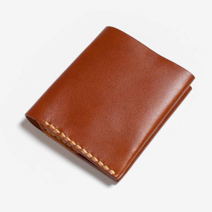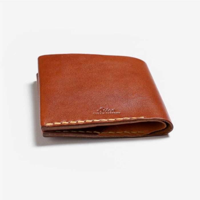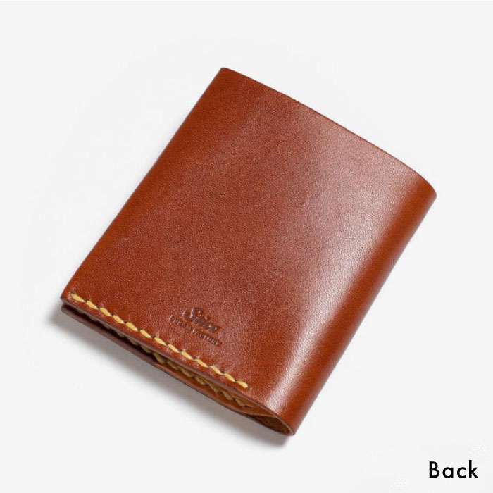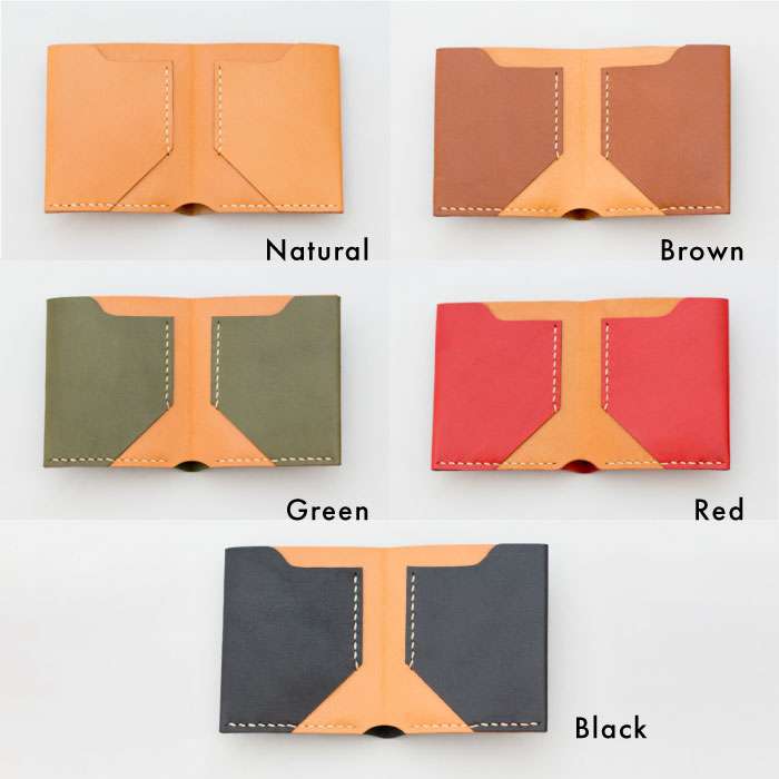 ポケットに入れてもかさ張らないコンパクトなデザイン。麻糸のステッチは工房で一つ一つ手縫いしたものです。カードポケットの内側から覗くナチュラルの革色がアクセントになっています。