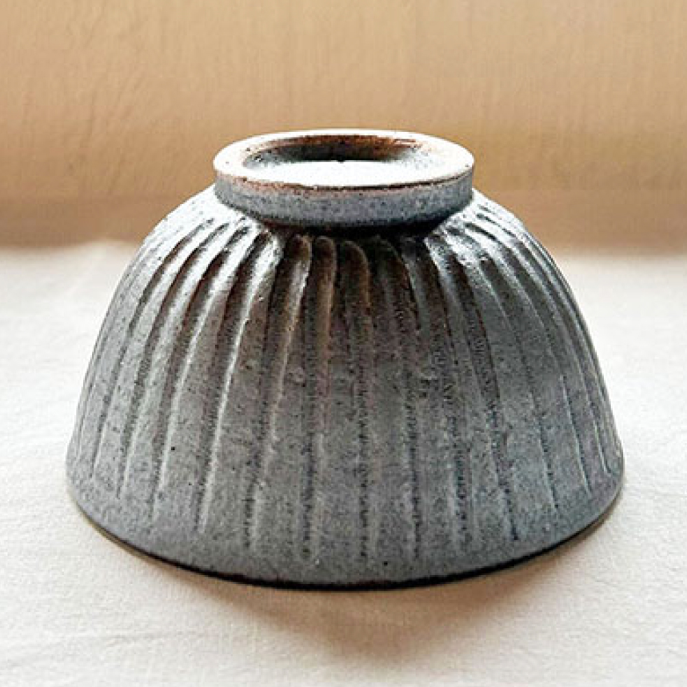 外側に施したしのぎ紋、丸みのある形状と安定感のある高台で持ちやすく、使いやすい飯碗です。