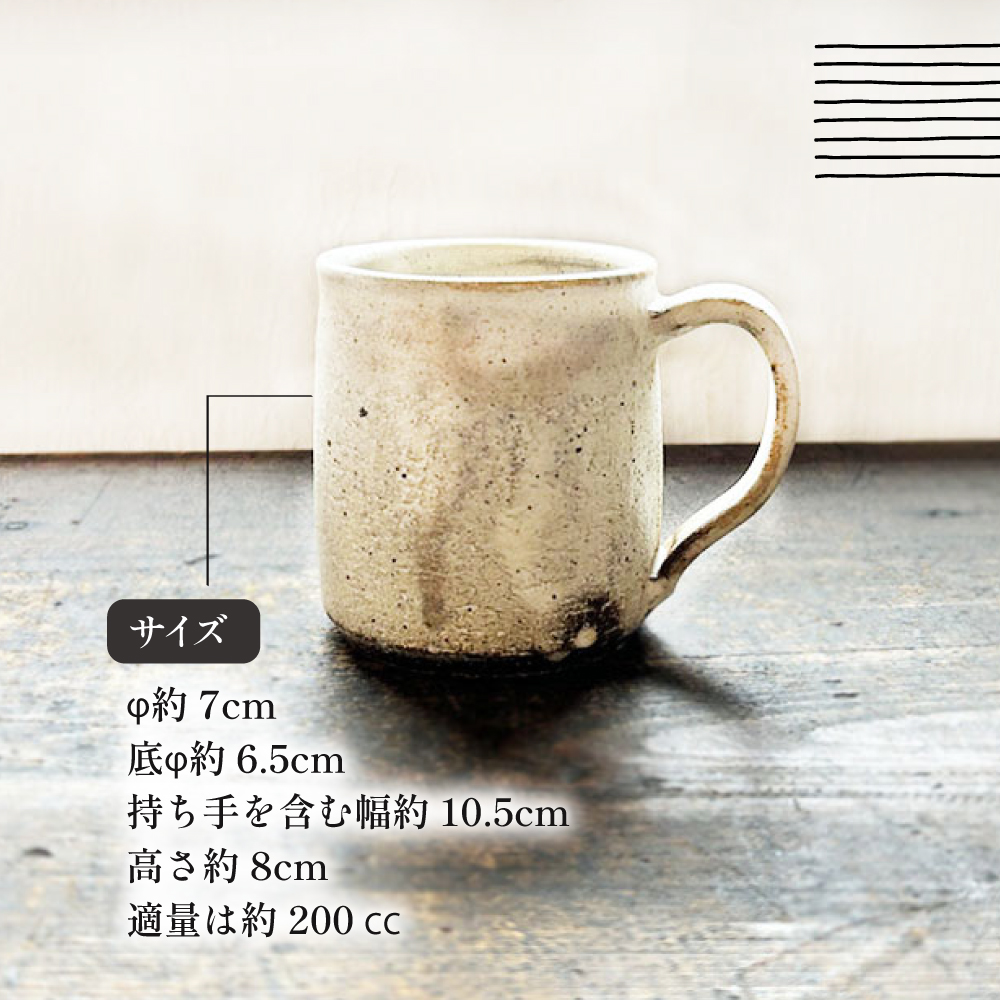 軽くて使いやすいマグカップです。幅にゆとりがあり握りやすい持ち手と、口部分の反り具合による口当たりの良さを特徴とした、長年制作している定番のマグカップです。