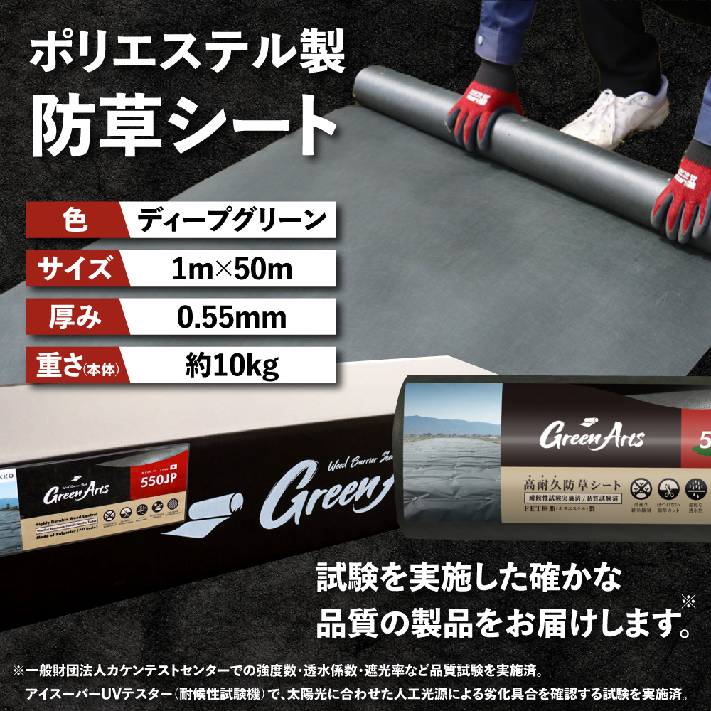 ※安価で耐久性の弱いポリプロピレン製防草シートとは異なり、織り目の無いエンボス加工が生地の特徴。