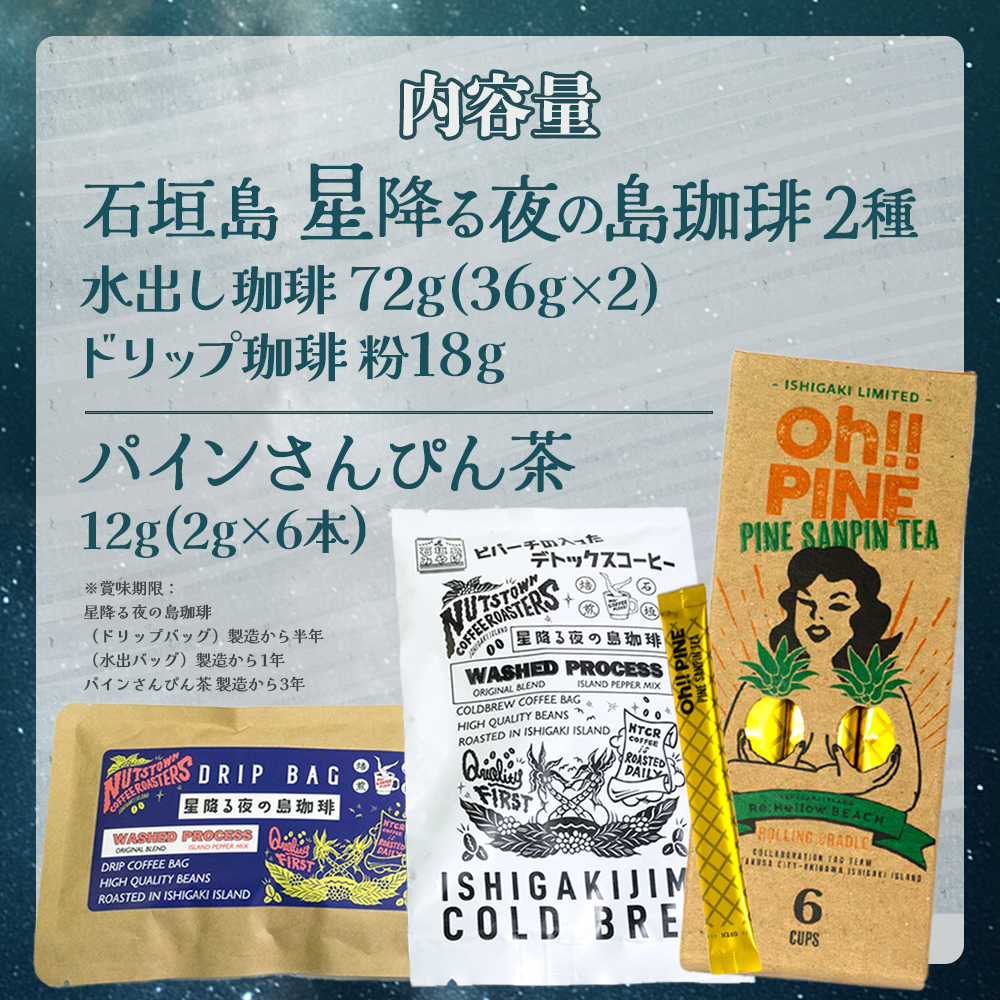 7. 石垣島 星降る夜の島珈琲(2種)&パインさんぴん茶のセット CK-11