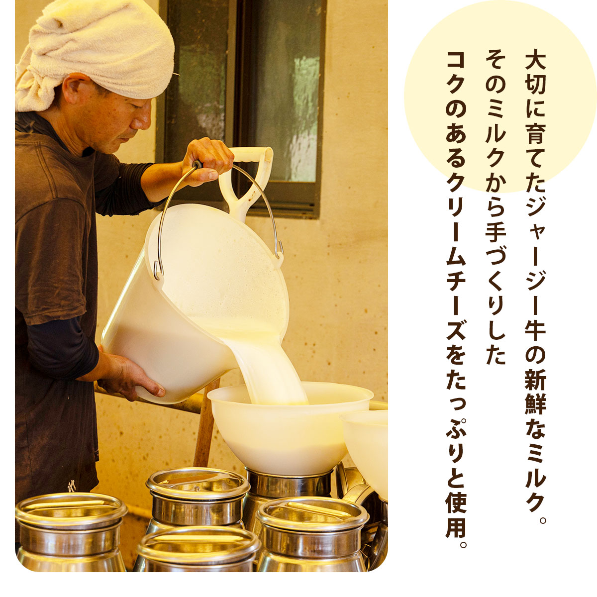そのミルクから手づくりしたコクのあるクリームチーズをたっぷりと使用。