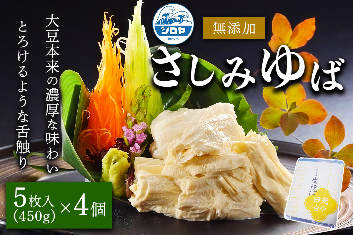[白や] さしみゆば (5枚入×4個)|無添加 日光ゆば ゆば 湯波 湯葉 豆乳 さしみゆば ヘルシー 大豆 豆乳 イソフラボン 食物繊維 たんぱく質 栃木県産大豆100% 国産 日光市 [0697]
