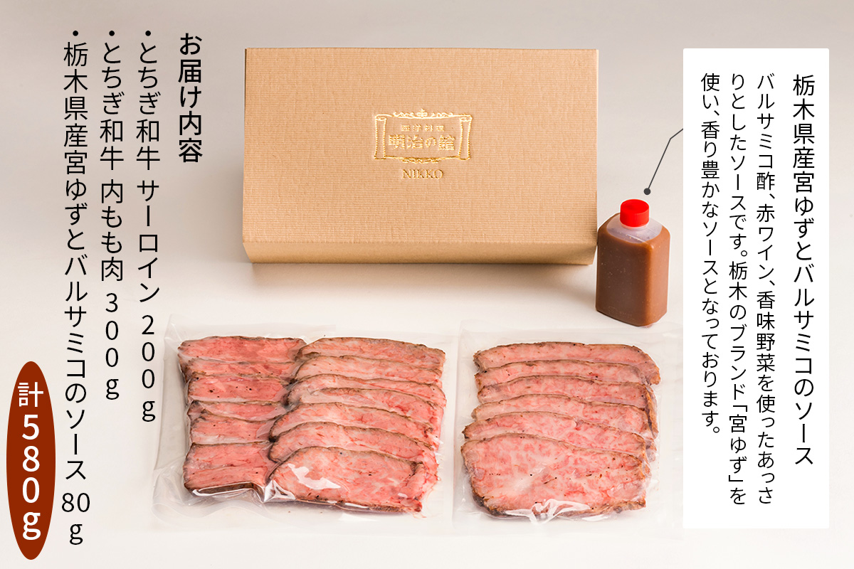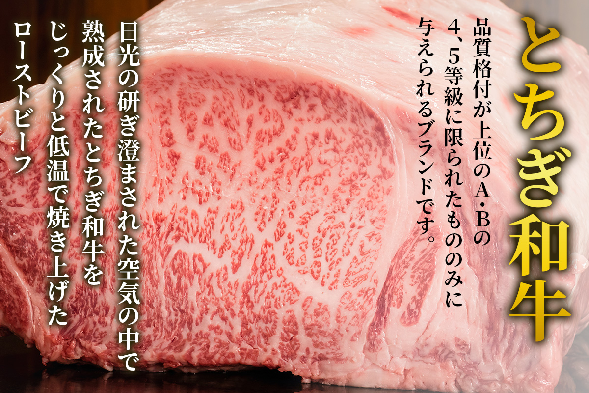 日光の神聖な地から霧降高原の研ぎ澄まされた空気の中で熟成された「とちぎ和牛」を低温でじっくりと焼き上げたローストビーフです。