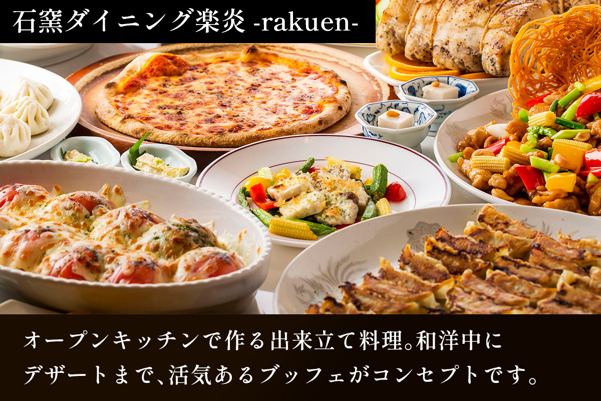 夕食・朝食共にダイニングルーム楽炎でのブッフェをご用意させていただきます。