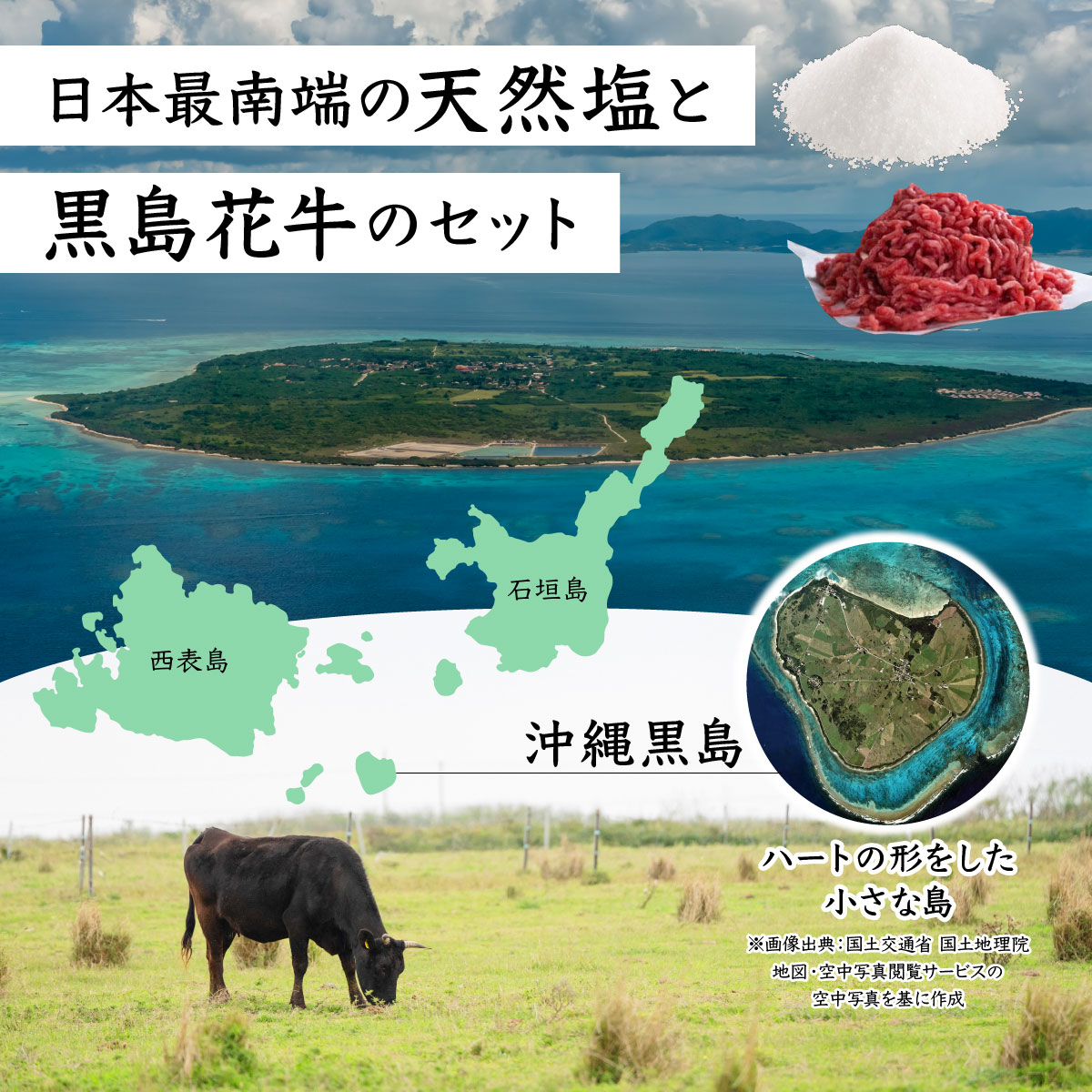 沖縄黒島ー黒島ブルーが生み出す、日本最南端の天然塩と黒島花牛のセット