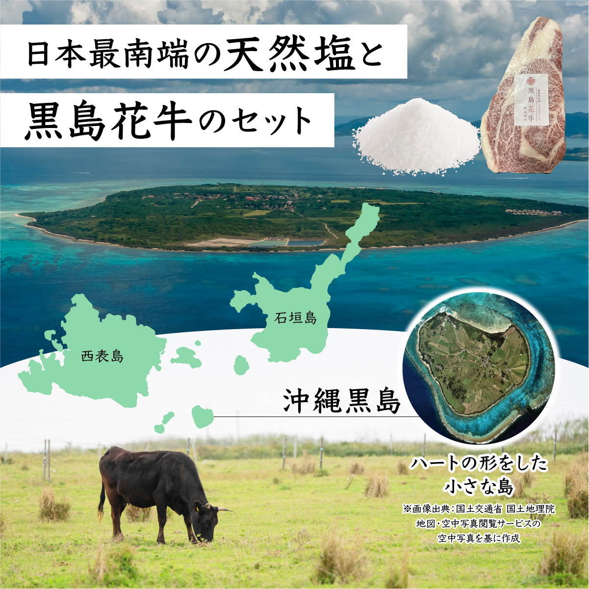 沖縄黒島ー黒島ブルーが生み出す、日本最南端の天然塩と黒島花牛のセット