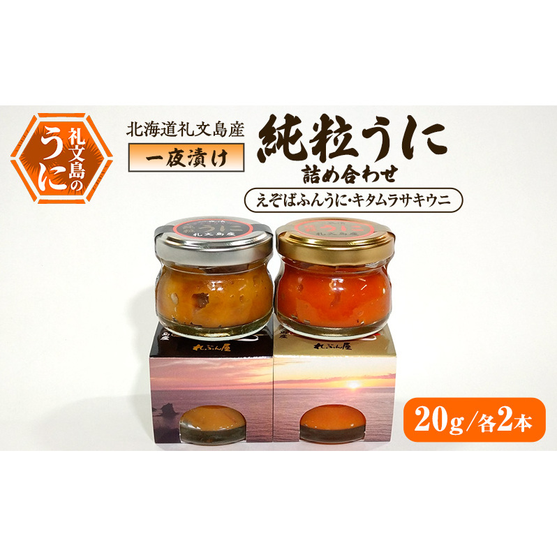北海道礼文島産 一夜漬け純粒うに詰め合わせ(えぞばふんうに・キタムラサキウニ 20g各2本)