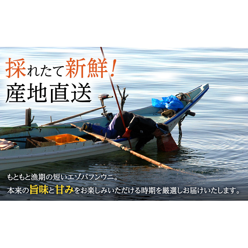 もともと漁期の短いエゾバフンウニですが、本来の旨味と甘みをお届ける時期を厳選しお届けいたします。