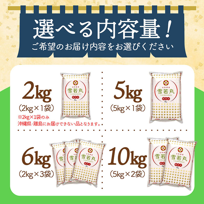 <12月中旬発送>山形米6か月定期便!雪若丸無洗米 2kg(入金期限:2025.11.25)