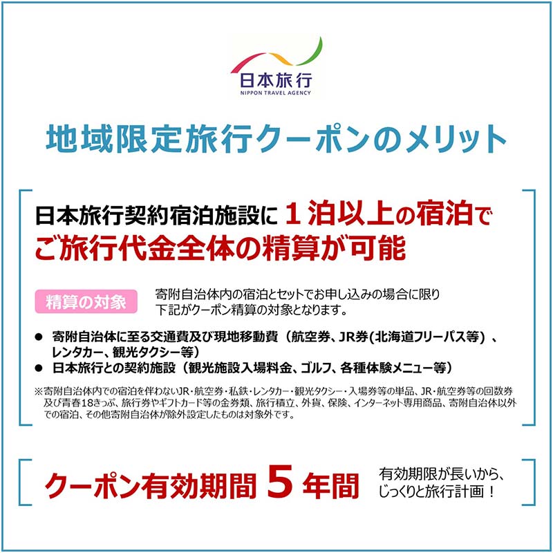 北海道内に1泊以上の宿泊を伴うご旅行であれば、宿泊費だけでなく、現地までの交通費や現地での観光・体験等の精算にまで幅広く利用できる地域限定旅行クーポンです。