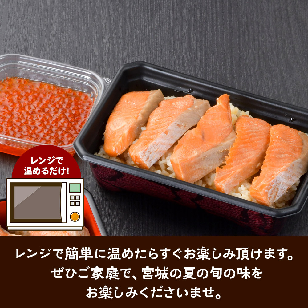 ■内容量:宮城さーもん100g、伊達正夢の炊き込みご飯300g、自家製味付きますいくら50g