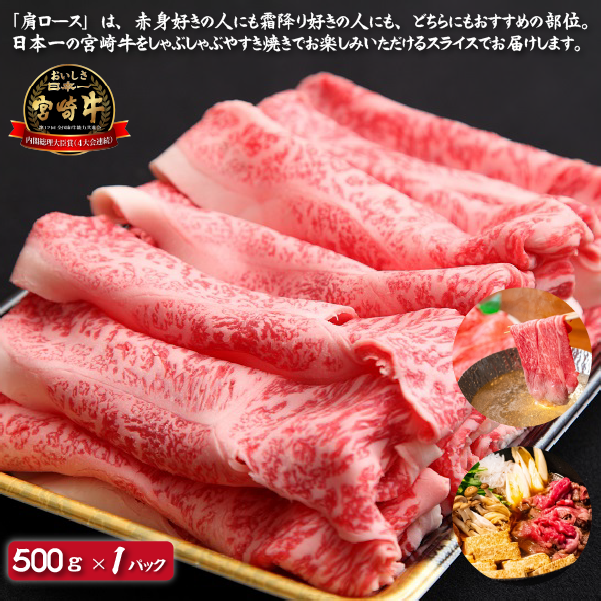 【食べログ百名店提供】宮崎牛肩ローススライス 500g(牛肉 黒毛和牛 宮崎牛 すき焼き ブランド牛 内閣総理大臣賞)