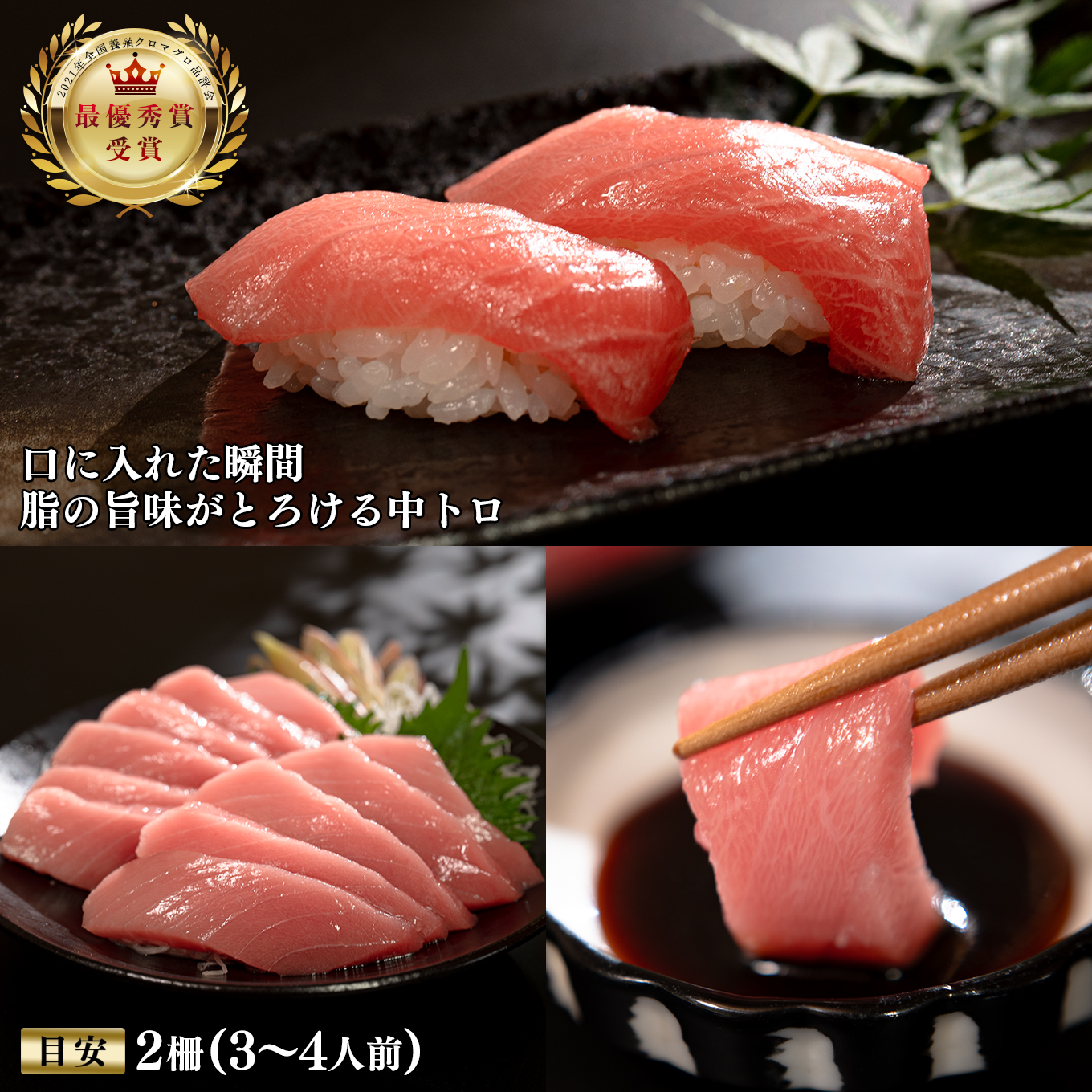 2021年に行われた全国養殖クロマグロ品評会にて最優秀賞を受賞した、『黒潮本まぐろ』の中トロを毎月一度、計12回お届けします!