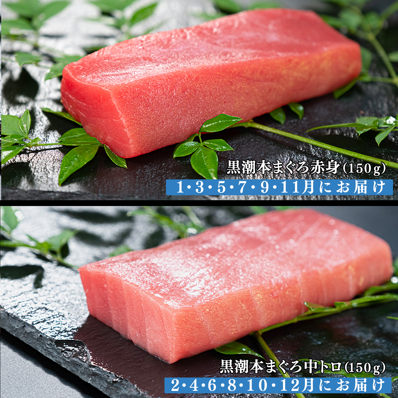 「2021年全国養殖クロマグロ品評会」にて最優秀賞を受賞した、『黒潮本まぐろ』の中トロと赤身を毎月一度、交互に計12回お届けします!