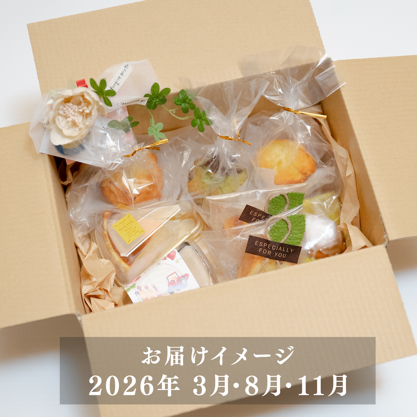 ふるさと納税で大人気、月の宿焼菓子店の作るケーキを詰め合わせた「スイーツボックス」を計3回お届けします。