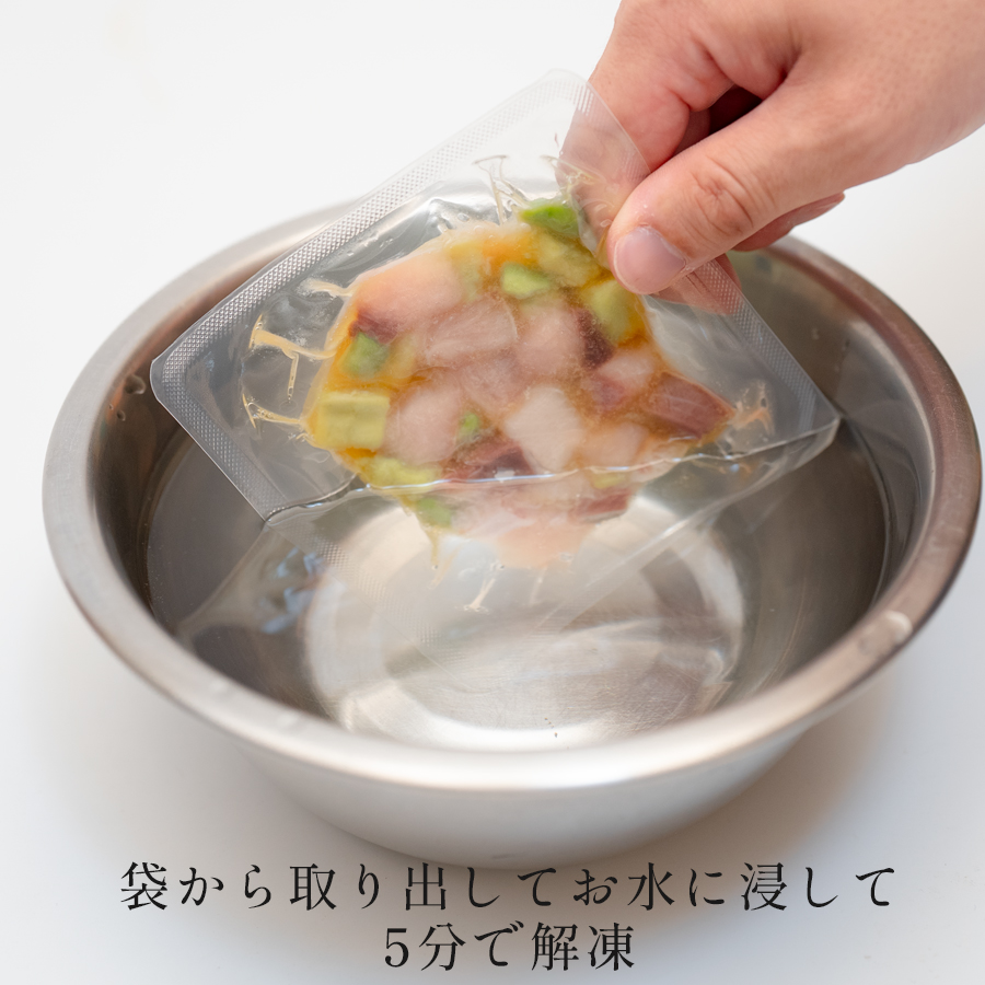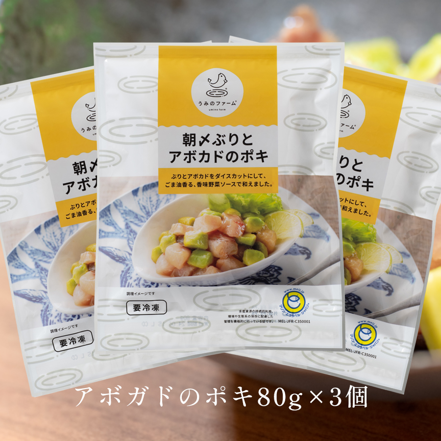 早朝に活け〆したブリを、宿毛市の自社加工場へと運び、食べやすい大きさにカットし、アボカドと合わせました。
