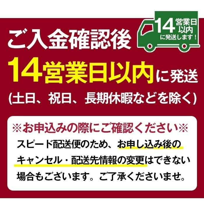 入金確認後、14営業日以内の発送