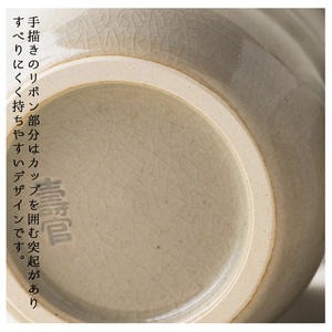手描きのリボン部分はカップを囲む突起があり、すべりにくく持ちやすいデザインです。