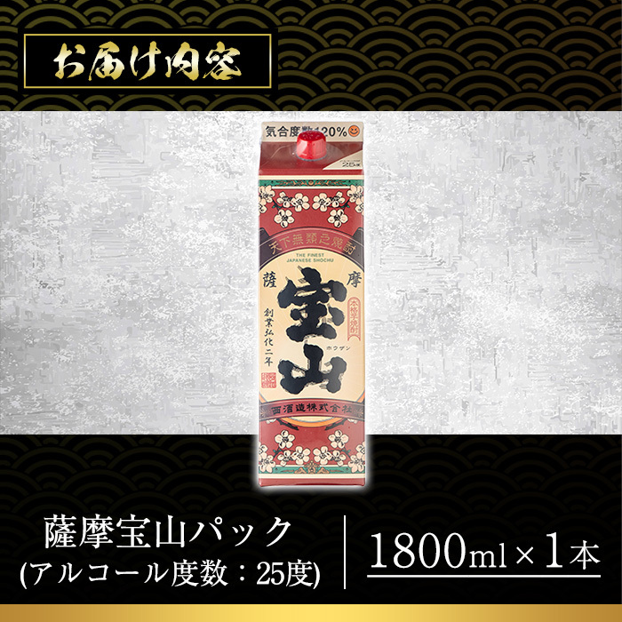 6. No.1179 薩摩宝山パック(1800ml×1本) 焼酎 酒 アルコール 家飲み 宅飲み 芋 薩摩芋 米麹 国産 パック 常温 常温保存【西酒造】
